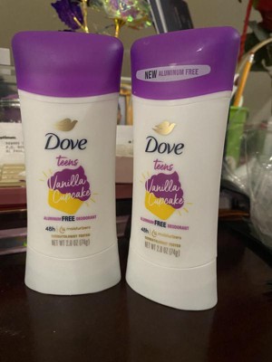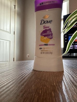 Dove Teens Deodorant Stick Vanilla Cupcake Scent, Gentle Odor Protection Designed for Teens, 2.6 Oz