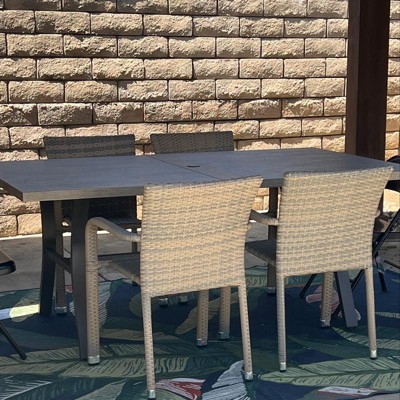 Dover 2pk Wicker Armed Stacking Chairs - Chateau Gray - Christopher Knight Home: Weather-Resistant Aluminum Frame