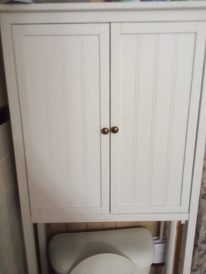 [This review was collected as part of a promotion.] This over the toilet hutch is exactly what I needed for my powder room! It looks great and has the double doors to hide all my personal stuff so it's not just laying around! The white matches my bathroom nicely, and it's larger in size than I expected. I love it! I was able to organize my lotions, hair stuff, deodorant etc on the 3 shelves inside the cabinet to reduce clutter on my sink counter. Love that it's sturdy and you can situate the shelves inside to fit what you need in there. My husband put this together easily and it comes with a wall mount to make sure it doesn't tip over. Highly recommend if you're looking for a nice upgrade to your bathroom!