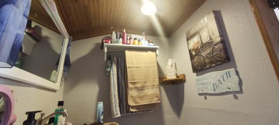 - Bathroom shelf with two towel rods: 27" W x 8" D x 6" H