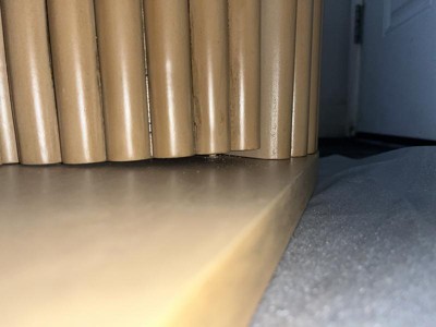 A: Hello - We appreciate your interest in this console table. I'd like to let you know that the legs are hollow, so there is a circular opening under each leg. We hope this information proves useful to you. - Steve