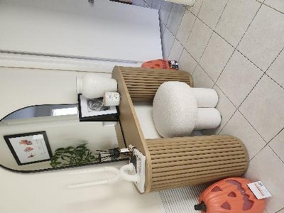 A: The console table weighs 43.34 pounds, making it sturdy yet manageable to move.