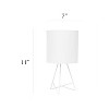 Bring function and fashion to any tabletop in your home with this modern 14" table lamp. The white metal base showcases an open silhouette complimented by a white fabric drum shade. Perfect size for any room in your home ! Illuminate your living room, bedroom, kids and teen rooms, college dorm, apartment, nursery, or offices with this modern table lamp with contemporary flair!