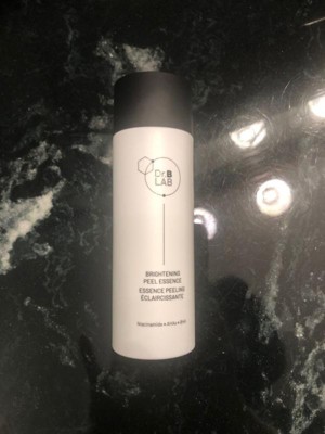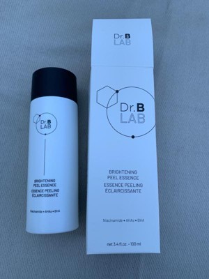 Dr. B. Lab brightening peel essence by Dr. Brandt I am using Dr. Brown’s brightening peel essence. It is a clear liquid that you apply morning and night. . Either use six or seven drops to my clean skin and then follow up with my regular skin regime. I don’t smell any fragrance. It contains niacinamide AHA’s and BHA. It is a gentle peel essence. It leaves my skin looking brighter and feeling softer. I have been using it for about a week and I do see a difference in my skin. I really like the Dr. Brandt products.The bottle contains about 3.4 ounces or 100 ml of essence. It is best to avoid the eye area. This has been tested on all skin, types and tones, and has been clinically proven to be effective.