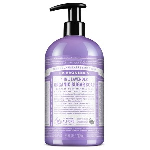 Dr. Bronner's Lavender Organic Sugar Soap – Soothing and calming! Sweet to the body and planet! Fair trade & organic sugar gives our Organic Sugar Soaps a rich caramel color and sweet scent. The sugar combines with organic white grape juice to keep your skin nourished, hydrated and smooth. Organic coconut-olive-hemp oils blend for a creamy castile lather & our soapmaking tradition! Organic hemp oil is now sourced in the U.S. following hemp legalization! 4-in-1 Organic Sugar Soaps are good for washing hands, face, body & hair & place by your sink or in the shower! To wash hair work one pump of Organic Sugar Soap into wet hair until it lathers, then rub and rinse. Repeat for thicker or longer hair. After washing, follow up with a lightly acidic conditioning rinse, like Dr. Bronner's Citrus Organic Hair Rinse to leave hair silky smooth! Don't have our Organic Hair Rinse? Use diluted apple cider vinegar or lemon juice! OK!