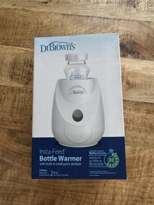 - BABY BOTTLE WARMER AND STERILIZER. Warm baby bottles and food jars in as little as 80 seconds with Dr. Brown’s Insta-Feed Bottle Warmer and Sterilizer!
