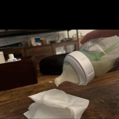 The nipple was really flimsy, folds at the slightest touch which can cut off circulation of milk. But my bigger issue was the LEAK. The tip of this nipple is just a hole, so with or without the vent, it will LEAK. It’s not the type where the milk comes out when the baby sucks. So really the baby doesn’t have to put in much work. (I looked on the official website regarding this issue and it says: “Because the bottle works the way it does, it is an open system that allows liquid to drip out of the nipple when turned over. When the vent, collar and nipple are on, the bottle needs to remain upright. Placing a bottle cap over the nipple does not prevent liquid from coming out of the nipple when turned over.” So to prevent a leak when not in use, you need the travel disk. But that’s not useful when my baby wants to take just a 10 second break from drinking milk. It leaks all over her. It’s not about how tight the cap is screwed on, or if the milk is too warm, or if I shook the bottle with formula. The nipple leaks when not upright, period. My child can drink from it but I need to constantly be watching for the spilled milk. She hasn’t developed the self-autonomy to prevent milk from spilling just yet. I would only recommend for infants who know to keep bottles upright when not actively drinking.