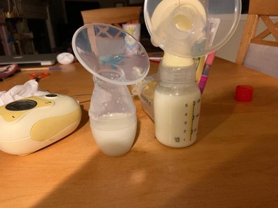 While I love using a silicone breast pump to collect while breastfeeding, this option is pretty small flange wise and without a stronger base, is prone to tipping over.