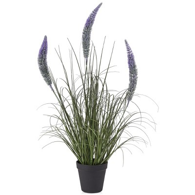 36" Artificial Foxtail Onion Grass Potted Plant - Purple & Green Faux Flowering Spikes - Fake Indoor Floor Decor for Home Living Room Entryway