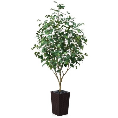 DR.Planzen 5-8FT Adjustable Artificial Olive Tree - UV Resistant Fake Plant in 15.7-22.7" Tall Planter (B/W/Coffee) for Indoor/Outdoor