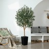DR.Planzen 72" Artificial Olive Tree with Real Wood Branches - 6FT UV Resistant Indoor/Outdoor Fake Plant in 15.7" Planter (B/W/Coffee)