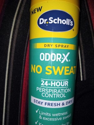 [This review was collected as part of a promotion.] Dr. Scholl's Odor-X No Sweat Dry Spray helps with those lingering smells from foot odor. Does help with keeping my feet dry as my feet sweat all day. The only thing I can tell is that it doesn't have a pleasant odor itself.