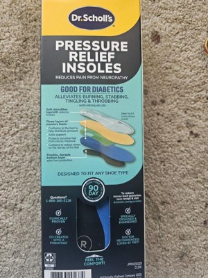 [This review was collected as part of a promotion.] I received this complimentary product from Influenster and Dr. Scholl's for my honest review. I have been using these Women's pressure relief diabetic neuropathy insoles for about a month and I can definitely say they have helped me with my blood circulation on my feet,I always struggle with having cold feet as a diabetic where I lose sensation and gain tingling but they are very comfortable and warm in my shoes. I love that you can size it to your shoe size very easy to cut excess foam. I work all day standing up, walking and they are very comfortable.I would definitely recommend them they are amazing.
