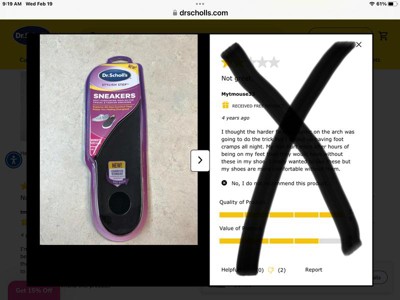 I placed an online for car pick up before going to work. When I got home I go to open this package and it was already partially opened. I pulled out both shoe inserts and you can see pet hair and they were already cut to fit someone shoes. I am allergic to pet hair so I also had a reaction. I tried calling several times the store and no answer. At one point someone picked up and hung up. I don’t have time to go in the store of course that’s why I did a quick pick up order. It’s disgusting the store would resale this item and try to sneak off as new. See pictures attached.