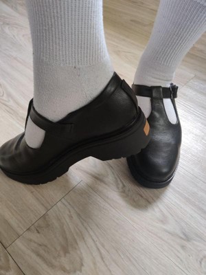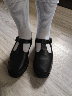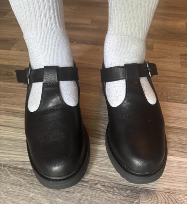 [This review was collected as part of a promotion.] These shoes are perfect for work! I had to size up a half size from my normal 7, but I have pretty wide feet, so if you do too you might want to size up from your normal size. The size up doesn’t feel too tight on my heels and the insoles are very comfy, so if you had a job where you’d spend hours standing up these would work. I have a standing desk and these were very squishy and comfy! I liked styling them with some more frilly socks. They could work with skirts or pants.