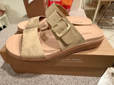 [This review was collected as part of a promotion.] Obsessed with these Dr. Scholl's gold slide sandals. They're incredibly comfy, super cute, and go with everything. The perfect mix of shine and simplicity—ideal for spring and summer.