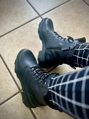 • STYLE: Lace-up combat boot with inside zip, padded collar, and 1 1/2 inch platform lug sole
