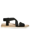 • STYLE: Strappy casual sandal with soft gore straps and contoured footbed with a slim 1 1/3 inch faux wood wedge heel and scalloped white bottom