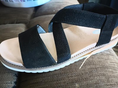I bought these this past weekend and have worn them twice. They felt comfortable and I was excited to wear them to work. Well, today (only the second time wearing them) I came home and noticed that part of the heel (The wrap around wood looking strap) is peeling off! I'm very annoyed because these were not cheap sandals to be breaking after the second wear! I've always had good luck with Sketchers, so maybe I'll need to go back to that brand.