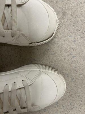 • STYLE: Womens lace up tennis shoes with retro-inspired toe cap and 2 1/4 white platform sole