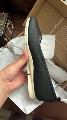 [This review was collected as part of a promotion.] Just tried on my new flats today and I’m already obsessed 😍 They’re sleek, super lightweight, and the cushioned soles make them ridiculously comfy for all-day wear. The simple black design with the off-white sole goes with literally everything — from my camo joggers here to a dressier look. Perfect for errands, travel, or just looking put together without sacrificing comfort. 10/10 for style + practicality!