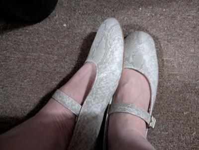 [This review was collected as part of a promotion.] The Mary Jane ballet shoe was quite comfortable. I wore to work and got many complement. The style is cute but I didn’t love the color/snake print. That’s shoes in black would be great.