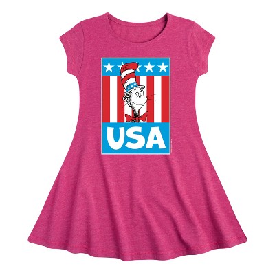 Dr. Seuss - American Thing One - Toddler And Youth Girls Fit And Flare Dress - Our collection of graphic apparel featuring officially licensed Dr. Seuss characters brings the whimsy and wonder of Seussville straight into your wardrobe. From the mischievous Cat in the Hat to the stinky Grinch, each design showcases iconic characters and scenes from Dr. Seuss's timeless stories.