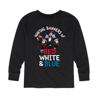 Dr. Seuss - Cat In the Hat USA - Toddler And Youth Long Sleeve Graphic T-Shirt - Our collection of graphic apparel featuring officially licensed Dr. Seuss characters brings the whimsy and wonder of Seussville straight into your wardrobe. From the mischievous Cat in the Hat to the stinky Grinch, each design showcases iconic characters and scenes from Dr. Seuss's timeless stories.