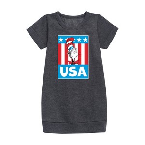 Girls' - Dr. Seuss - Cat in the Hat USA Graphic Short Sleeve Fleece Dress - 1 of 3