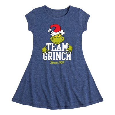 Girls' - The Grinch -  Fit & Flair Cap Sleeve Graphic Dress - 1 of 3