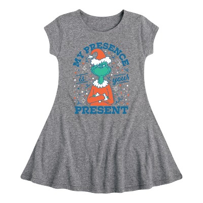 Girls' - The Grinch -  Fit & Flair Cap Sleeve Graphic Dress - 1 of 3