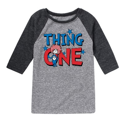 Dr. Seuss - Red, White and Blue Fish - Toddler And Youth Raglan Graphic T-Shirt - Our collection of graphic apparel featuring officially licensed Dr. Seuss characters brings the whimsy and wonder of Seussville straight into your wardrobe. From the mischievous Cat in the Hat to the stinky Grinch, each design showcases iconic characters and scenes from Dr. Seuss's timeless stories.