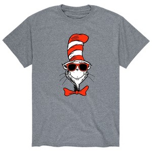 Dr. Seuss - Cat in The Hat - Men's Short Sleeve Graphic T-Shirt - Our collection of graphic apparel featuring officially licensed Dr. Seuss characters brings the whimsy and wonder of Seussville straight into your wardrobe. From the mischievous Cat in the Hat to the stinky Grinch, each design showcases iconic characters and scenes from Dr. Seuss's timeless stories.