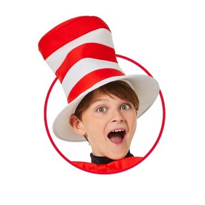 The Cat in the Hat's red and white striped top hat is instantly recognizable as a symbol of the famous author, Dr. Seuss. Dress up as a character from your favorite storybook with this The Cat in the Hat Child Hat. So if you're looking for a hat that's stylish and fun and bold, the Cat in the Hat child hat is definitely what you should hold! It's perfect for kids of all ages, whether big or small, and it's sure to be the most awesome hat of all!