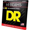 Gauges .45, .65, .85, .105, .125. DR Strings Hi-Beam stainless steel bass strings are round wound and constructed upon a round core which is unique in the industry. Hi-Beams require much more time, care and extra steps to make than other bass strings. The extra effort DR expends making Hi-Beams result in a bass string that is highly flexible, musically bright (not harshly bright), and renowned for durability, unusually long life, consistency, and string-to string balance. These bass strings don't eat frets. Hi-Beams are the string to choose for brightness, and ease of playing. DR Hi-Beams fit virtually all bass scale lengths up to 37-3/4".