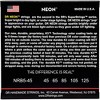 DR NEONs are super bright color coated strings that sound clear, bright and musical. Players love the bright NEON colors and their remarkable sound. Super bright in daylight and under stage lighting, DR's NEON 100% black light active and glow strongly under UV lighting. NEONs are the first coated string to make no apologies. While NEONs last as long as a coated string should (three to four times as long as uncoated strings) they sound as good, or better, than uncoated strings. These ones are red, guage .045 - .125 for 5-string electric bass.