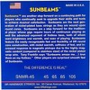 Sunbeams are roundwound nickel-plated bass strings with round-core constructon. These bass strings are perfect for traditional as well as fretless players wanting more brightness and warmth. Sunbeams feature the easily recognizable feel and flexibility of DR round-core construction with nickel warmth, softness of feel, and increased response to magnetic pickups due to the sensitive magnetic content (compared to stainless steel) of the nickel-plated wrap wire. Sunbeams are another step forward on continuing a path for players who continually seek to upgrade their skills and tools to achieve great musical satisfaction. Sunbeams are the next generation of nickel-plated bass strings as they are wound upon round cores. Sunbeams are a step forward for the traditional player, as the advanced exponent of fretless bass, both of whom want brightness and warmth. Sunbeams feature the easily recognizable feel and flexibility of DR round core Construction, with nickel warmth, softness of feel, and increased response to magnetic pickups due to the sensitive magnetic content (compared to stainless steel) of the nickel-plated wrap wire. Tony Franklin says "Sunbeams amaze me. I love them on my fretless." Gauges 45-65-85-105.