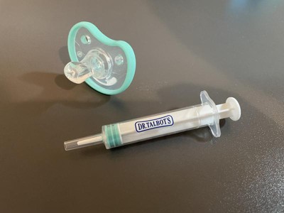 Love this!! Wish I had known about it sooner. I love that this fully dispenses the medicine through the syringe as well as the paci! I purchased a different one before knowing about the Dr. Talbots one. The other brand, the paci loosely goes on the tip of the syringe, leaving medicine in the paci as well as it’s easily pulled off of my son hits it or bites on it. This one, the paci fully covers the end of the syringe. There is an additional tip in the plunger of the syringe, making sure all the medication is dispensed. Easy to clean. Sturdy paci fitting, attaching to the syringe. Keeps the taste of the meds away from the taste buds, helping getting the baby it drink it. BPA, Phthalate & latex free, huge win! Will be using this for all new baby gifts for friends and family.