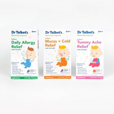 [This review was collected as part of a promotion.] Baby had sneezing and a-little nasal congestion . Dr. Talbots allergy baby syrup seemed to clear it up. I recommend it