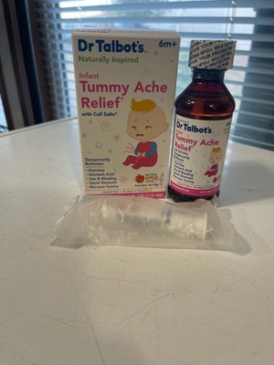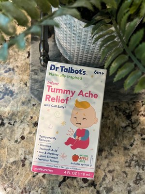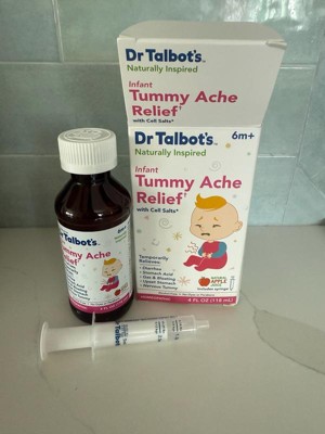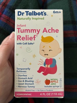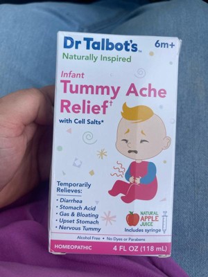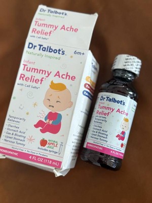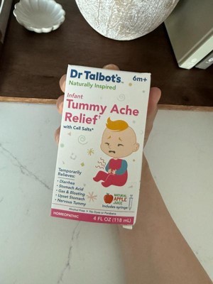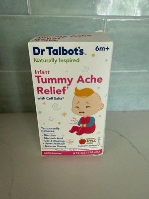 [This review was collected as part of a promotion.] Dr. Talbot's Infant Tummy Ache Relief — a homeopathic remedy designed for infants aged 6 months and older. Details: Type: Homeopathic liquid medicine Age: 6 months+ Volume: 4 fl oz (118 mL) Flavor: Natural Apple Juice Includes: Dosing syringe Targets Multiple Symptoms: Claims to temporarily relieve: Diarrhea Stomach acid Gas & bloating Upset stomach "Nervous tummy Alcohol-free, dye-free, and paraben-free — a big plus for sensitive infants.