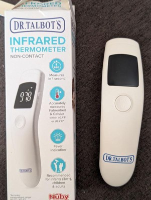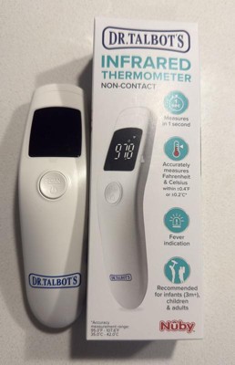 [This review was collected as part of a promotion.] As a parent, having a reliable and fast thermometer is non-negotiable, and the Dr. Talbot's Infrared Non-Contact Thermometer by Nuby absolutely delivers. This device is a must-have for any household, especially those with young children. The standout feature is the non-contact design, paired with a blazing-fast 1-second measurement time. This combination is a game-changer—no more waking up a sick baby or struggling to get a fidgety toddler to cooperate. You can quickly and accurately check a temperature without even touching them, making the experience less stressful for everyone involved. Beyond convenience, the accuracy is reassuring. The packaging clearly states it measures within \pm 0.4^\circ\text{F} (or \pm 0.2^\circ\text{C}), which is vital for monitoring illness. It seamlessly measures in both Fahrenheit and Celsius, offering versatility for different users. Plus, the integrated Fever Indication feature provides a quick, visual alert, adding an extra layer of confidence when you're tired and worried. Recommended for infants (3 months and up), children, and adults, this is truly a thermometer the entire family can rely on. If you are looking for peace of mind in a sleek, simple-to-use device, this is the one. Highly recommended!
