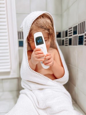 I got this a couple of months ago and it’s been wonderful. I love that it’s no contact so I can take my daughters temperature in her sleep without bothering her. What I love most is that she will actually sit still and let me take her temp with it - as opposed to the standard digital thermometers where you have to put it under the tongue or armpit and hold it there for 30 seconds. It tells you the temperature in seconds, I even use it for myself!
