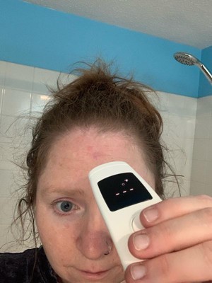 [This review was collected as part of a promotion.] I love how easy this is to use. I no longer have to fight my kids to let me check their temperature. They ask me to let them do it on their own. I do feel as though I can feel it when I use it. Get a tiny tingling sensation on my forehead, but nothing much. It seems to be accurate and it is super easy to use.