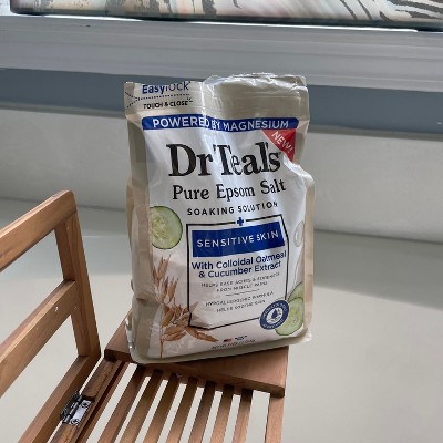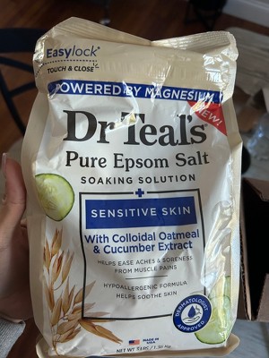 [This review was collected as part of a promotion.] I love this Epsom salt Oatmeal and Cucumber soak for sensitive skin. It's so relaxing and smells great. I don't have particularly sensitive skin, but my daughter does and when she used it, she didn't have any irritation whatsoever. She prefers a non-bubbling bath so up some salt is really good especially for active kid muscles. I really like Dr. teals Brandon in general and this is another one to add to my shopping list.