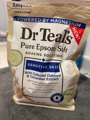 Dr Teal's Epsom Salt Magnesium Soak with Colloidal Oatmeal and Cucumber Extract is formulated for sensitive skin and helps soothe skin. This soothing soak combines Pure Epsom Salt (Magnesium Sulfate), which revitalizes tired, achy muscles and refreshes the skin's appearance, with a hypoallergenic blend designed for sensitive skin. The lightly fragranced formula is enriched with cucumber extract and colloidal oatmeal and offers a calming and relaxing bath experience. For an elevated experience, pair it with Dr Teal’s Sensitive Skin Foaming Bath. Dr Teal's Sensitive Skin collection is dermatologist approved and paraben-free, phthalate-free, cruelty-free, and vegan-friendly.