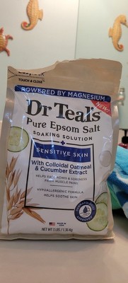 [This review was collected as part of a promotion.] I love Dr Teals Epsom Salts! Especially this one as it has added Colloidal Oatmeal and Cucumber Extract for sensitive skin. Helps the body detox, loosens tight muscles and relaxes them as well! Smells great and makes your skin so.sodt!