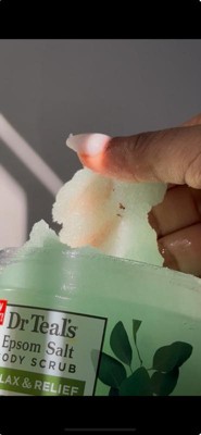 Dr Teals Eucalyptus Epsom Salt Body Scrub is formulated with Pure Epsom Salt, Natural Essential Oils and Minerals to gently exfoliate skin. Relaxing Eucalyptus essential oil soothes the senses, while Shea Butter and Jojoba Oil leave skin soft and moisturized. Massage onto skin in circular motions to slough away rough, dry areas. Great for use in bath or shower for the whole body or as a hand scrub.