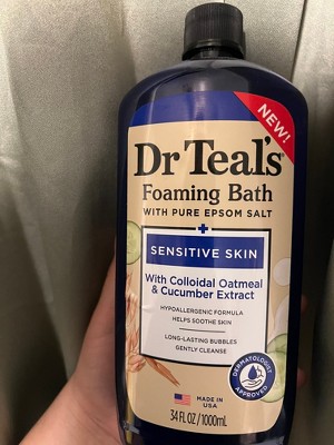 Dr Teal's Foaming Bath with Pure Epsom Salt, Sensitive Skin with Colloidal Oatmeal & Cucumber Extract - 34 fl oz