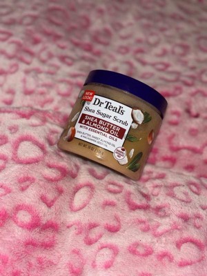 Dr Teal's® Shea Sugar Body Scrub is formulated with Shea Butter, Sugar, and Essential Oils to exfoliate and smooth skin. Essential oils help soothe the mind, while shea butter, sweet almond oil and macadamia seed oil leave the skin moisturized.