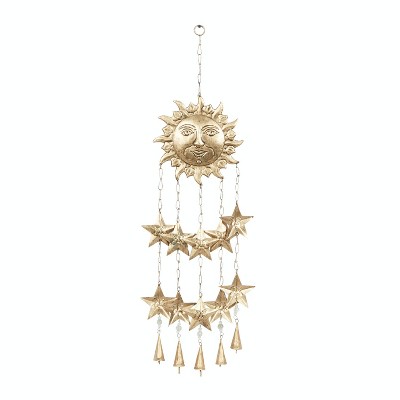 Enhance your outdoor space with the Bronze Metal Dragonfly Wind Chime, measuring 12 x 0.5 x 33". Crafted from durable iron with a distressed bronze finish, this wind chime features delicate dragonfly and cattail cut-out designs for a whimsical, nature-inspired look. Hanging in a garden, patio, or porch, it produces soothing melodic chimes that create a calming atmosphere for relaxation. Lightweight yet sturdy, it is suitable for both indoor and outdoor use. Perfect for adding a touch of charm and tranquility, this decorative accent complements traditional, rustic, and whimsical outdoor settings.